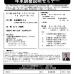 ※セミナーは終了しました (公社)高梁法人会高梁支部では、下記の予定で「令和7年分 年末調整セミナー」を開催いたします 日 時:令和7年11月21日(金)14時~16時40分 場 所:高梁国際ホテル 定 員:30名 受