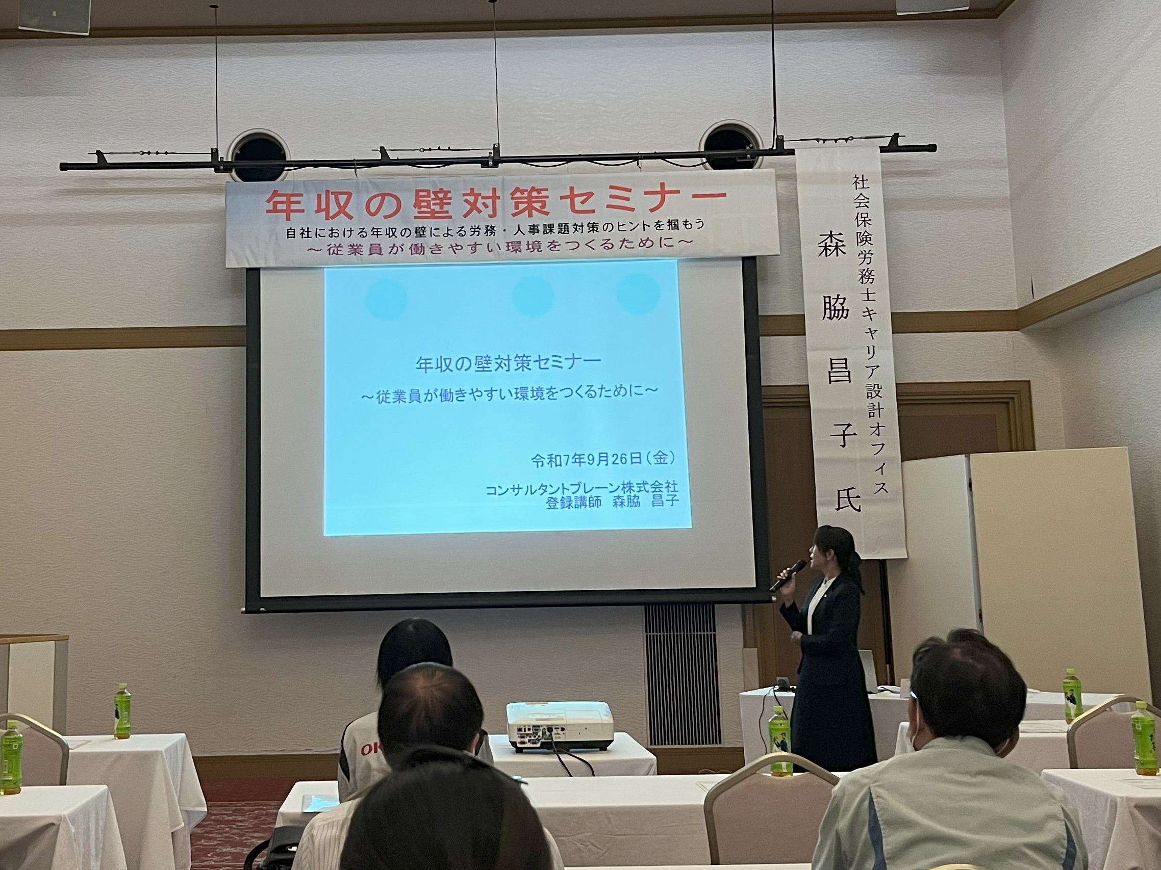 (公社)高梁法人会高梁支部では、9月26日(金)に高梁国際ホテルにおいて、年収の壁対策セミナー 「自社における年収の壁による労務・人事課題対策のヒントを掴もう ~従業員が働きやすい環境をつくるために~」を開催いたしました。(主催;高梁商工会議所、共催:(公社)高梁法人会高梁支部。高梁地区雇用開発協会)