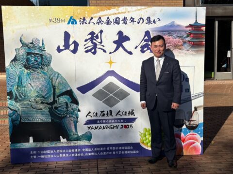 2025年12月1日 admin 第39回「法人会全国青年の集い」山梨大会 令和7年11月20日・21日に山梨県・アイメッセ山梨をメイン会場に、全国各地より青年部会員が集まって開催された”第39回法人会全国青年の集い「山梨大会」”に当青年部会から永井部会長が現地参加いたしました